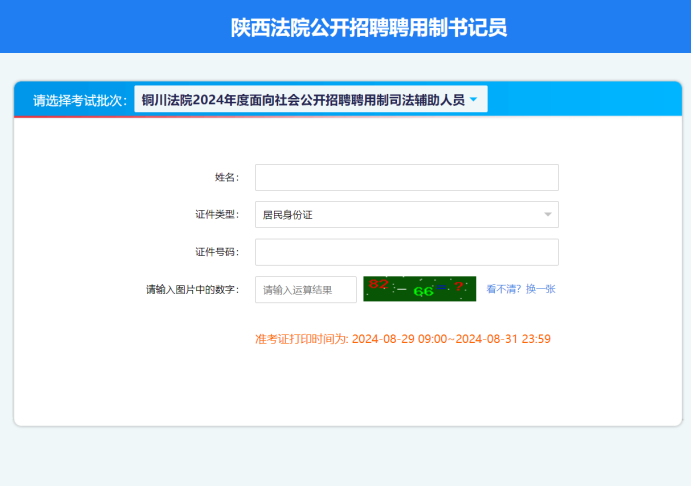 銅川法院2024年度面向社會公開招聘聘用制司法輔助人員考試定于9月1日舉行,考生們請于8月29日9:00至8月31日24:00期間登錄報名系統(tǒng)(http://bianpi.cn/)自行打印準(zhǔn)考證。